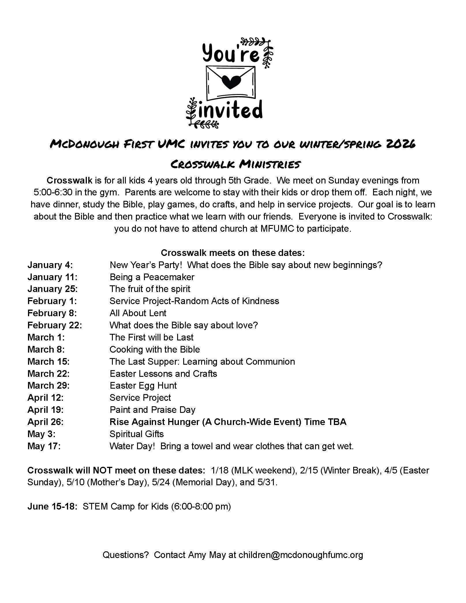 At McDonough First UMC, children are a cherished part of our church family. We’re committed to creating a safe, fun, and faith-filled environment where kids can learn about God’s love. Nursery care is available during Sunday worship for babies and toddlers, and we offer ministries for children up to 5th grade.
